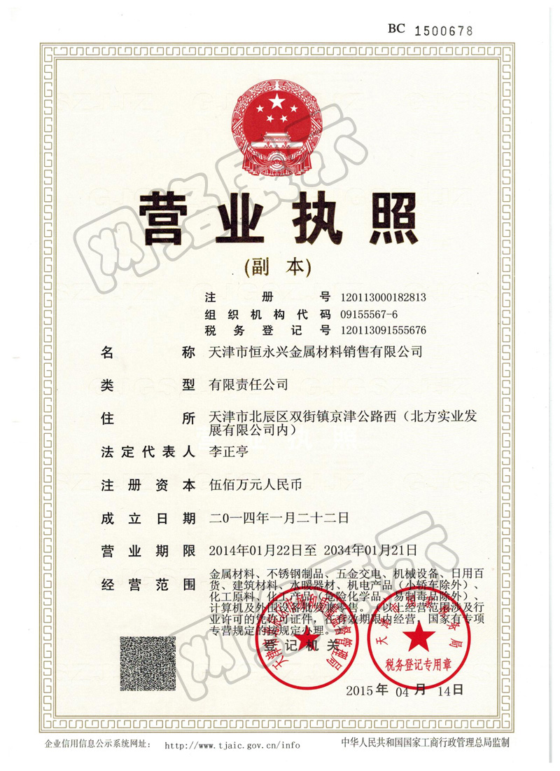 天津市恒永興金屬材料銷(xiāo)售有限公司